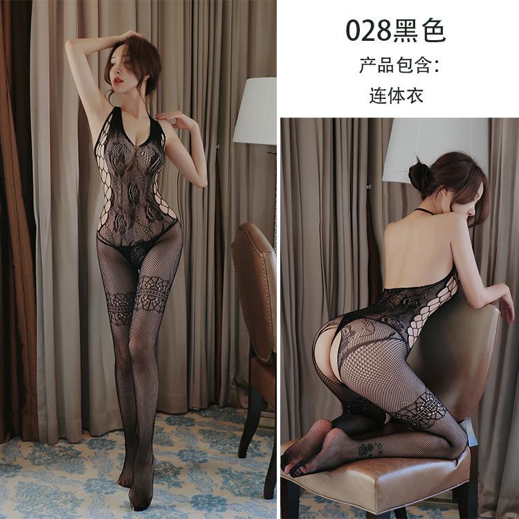 Sex underwear women's sexy pajamas transparent temptation open-file one-piece mesh stockings
