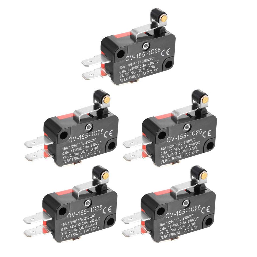 uxcell Micro Switch 15A 125/250VAC SPDT NO NC 3 Terminal Short Roller Lever Action Switch Pack of 5