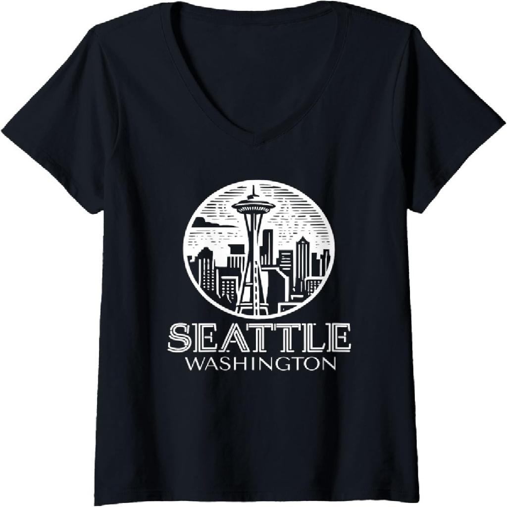 Womens Iconic Seattle Skyline Washington State V-Neck T-Shirt