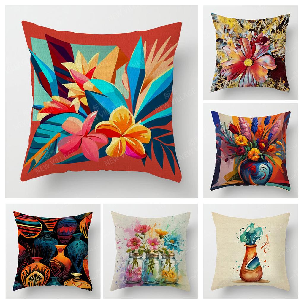 Scandinavian Plant Print Pillow Cover Living Room Sofa Cushion Cover Modern Simple Ins Style Home Decoration 40x40cm