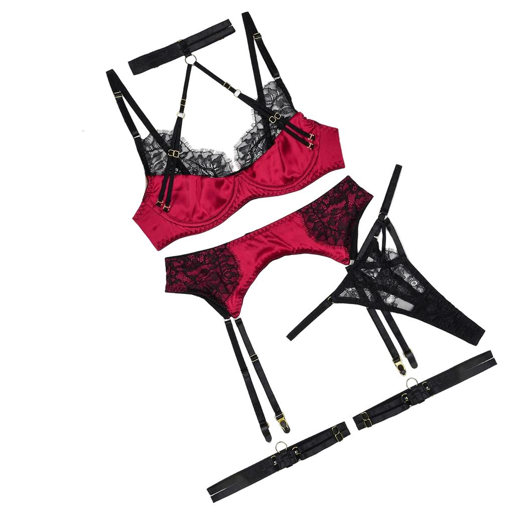 Set Embroidered Splicing Lace Body Shaping Underwear – Four Piece Set Other Women's Underwear
