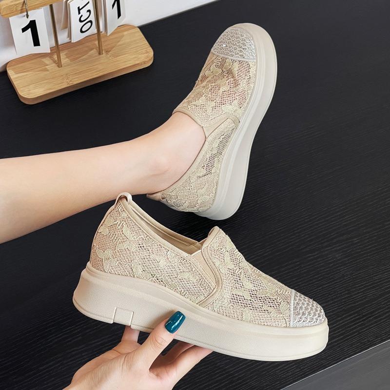 Breathable inside, women's shoes, lace fabric, new cut-out fisherman's shoes, platform muffin, wedge heel, light women