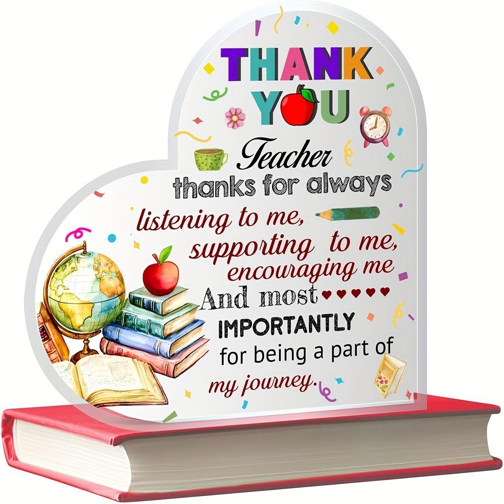 1pc Teacher Appreciation Quotes Heart Acrylic Sign Plaque For Teachers' Day End Of Year Back-To-School Gifts, Room Office Decor, Four Seasons