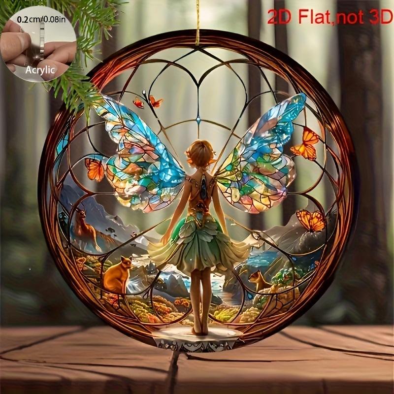 Classic Acrylic Enchanted Forest Fairy Sun Catcher - Stained Style Wall Hanging Decor Perfect for Porch, Room, Garden