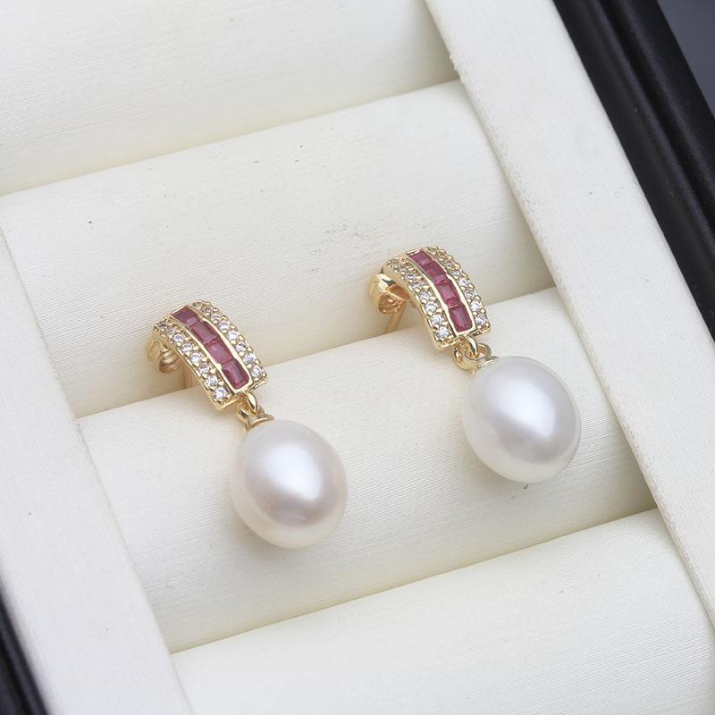 Srebrne Kolczyki Ślubne Perłowe ze Srebra Próby 925 Woda Słodka Kobieta, Vintage Naturalne Kolczyki Perłowe Biżuteria Żona Dziewczyna Prezent Urodzinowy Biały Różowy