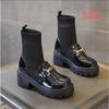 Black high-heeled short boots thick-heeled loafers boots integrated with wide-leg pants skirt shoes with socks Martin boots