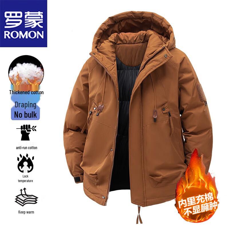 ROMON Męska zimowa ciepła pikowana kurtka z kapturem