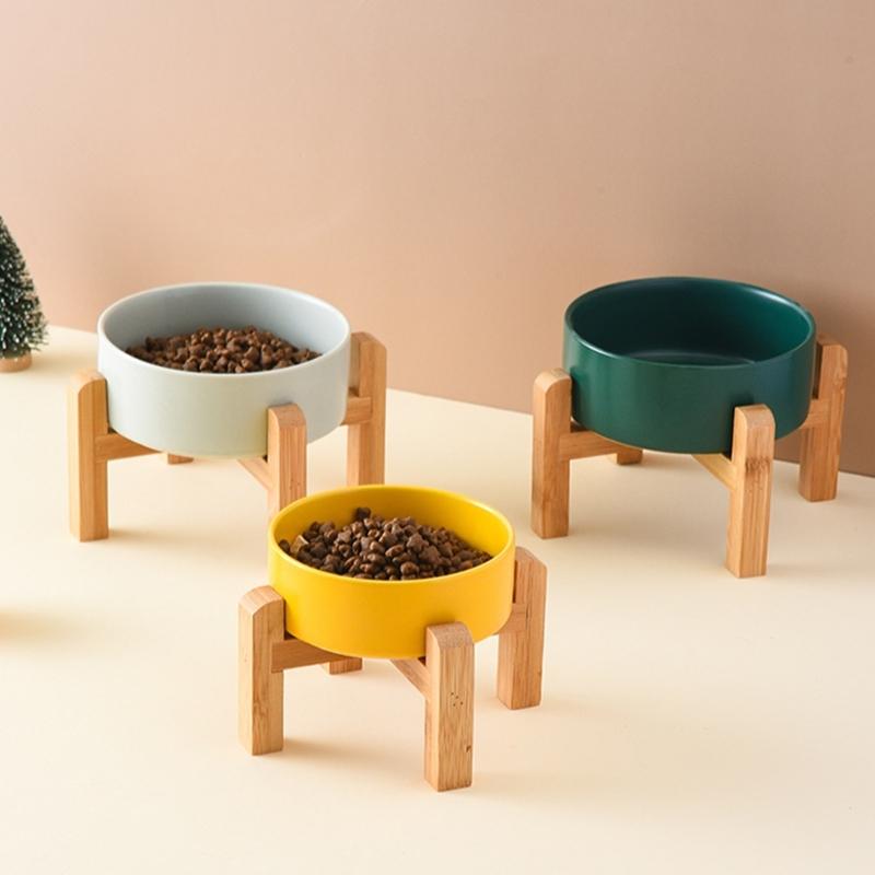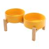 Antypoślizgowy Ceramiczny Zestaw Miseczek dla Zwierząt Podwyższony Drewniany Zestaw Podwójnych Misek Duża Pojemność Akcesoria do Karmienia Psów Kotów