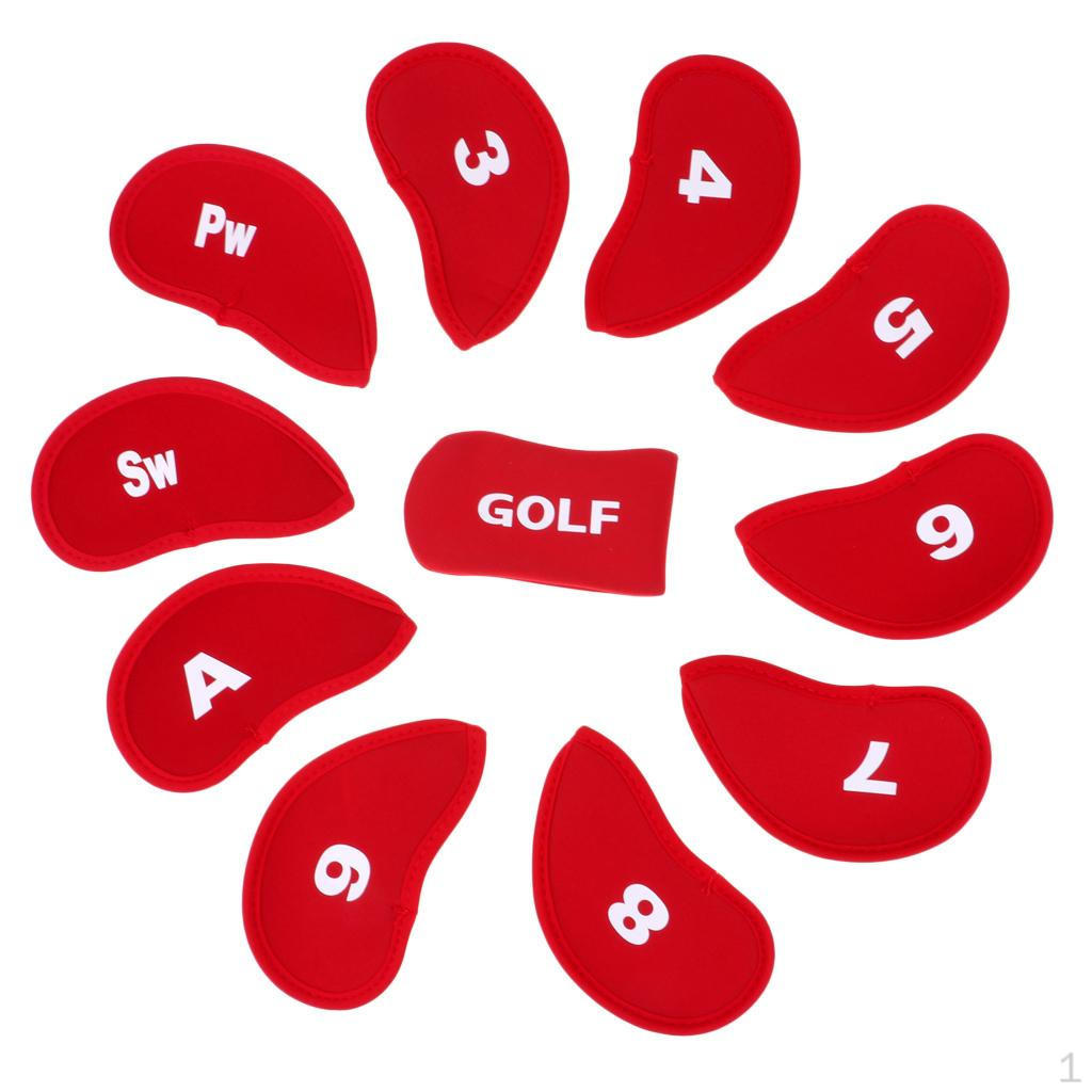 10 Neoprene Golf Club Iron Head Cover Protective Cover, Double-Sided Number Label Printing