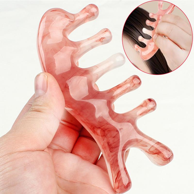 1Pc Pink Brown 5-Tooth Meridian Massage Comb, Resin Large-Tooth Head Massage Tool, 5-Paw Half Round Shap Comb