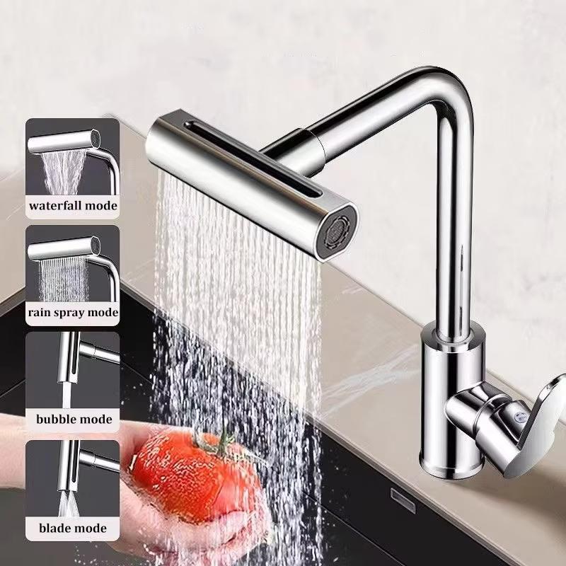 Wodospadowy kran kuchenny ze stali nierdzewnej 360° obrotowa głowica natryskowa z przepływem wodospadu, bateria kuchenna z ciepłą i zimną wodą