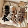 5pairs Women's Warm Winter Socks - British Style Rhombus Pattern Mid-Calf Cold-Proof Socks, Multiple Colors Available, Soft and Comfortable Fabric