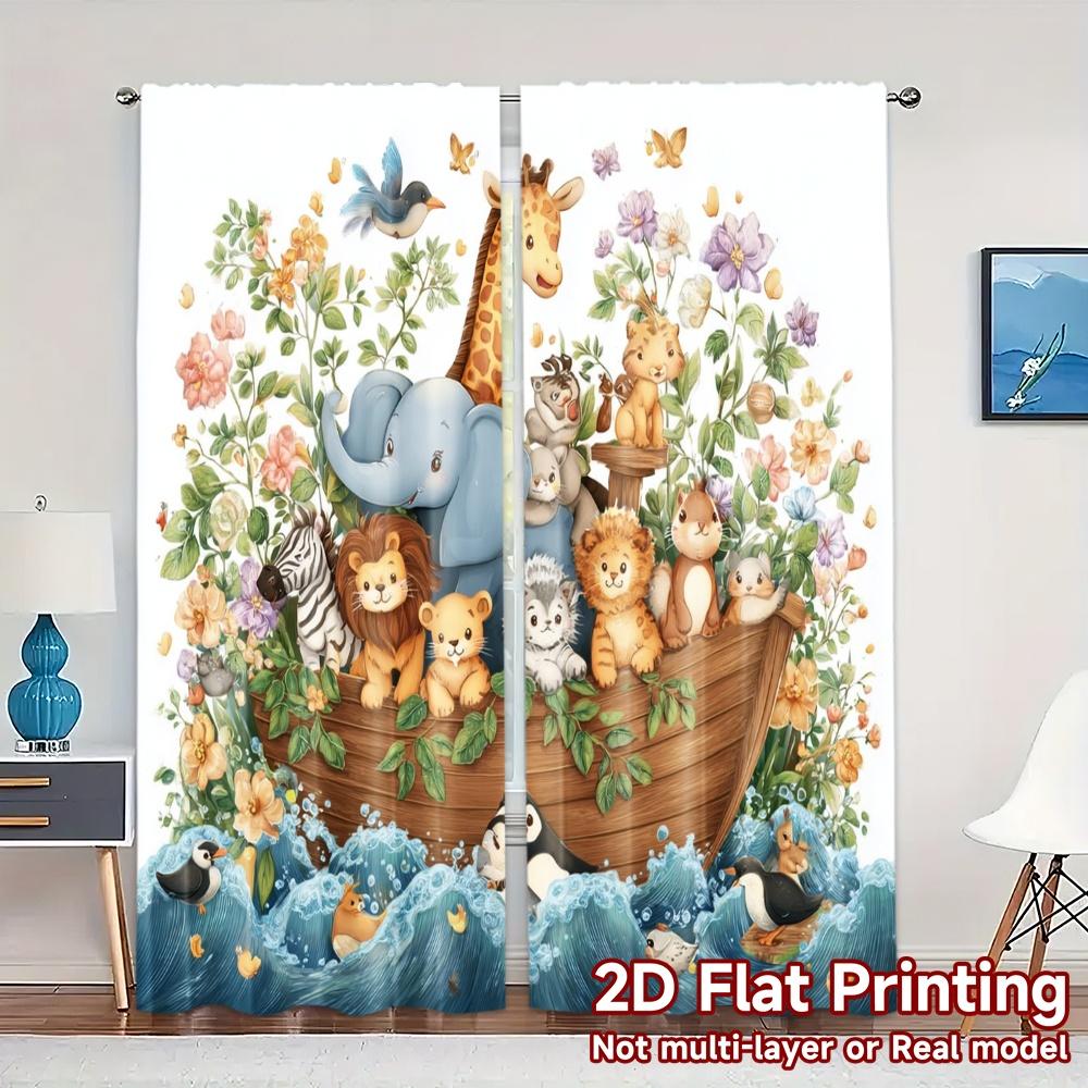 2pcs 2D FLAT PRINTING Curtains (Without Rod) AnimalArk Popular Curtains&Drapes Versatile Durable Polyester Curtains Room Decor