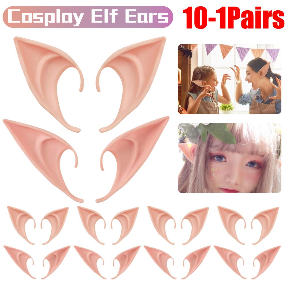 10-1 Pairs Halloween Elf Ears Latex Ears for Angel Halloween Cosplay Decoration Masquerade Costume Fairy Photo Props Party Decor