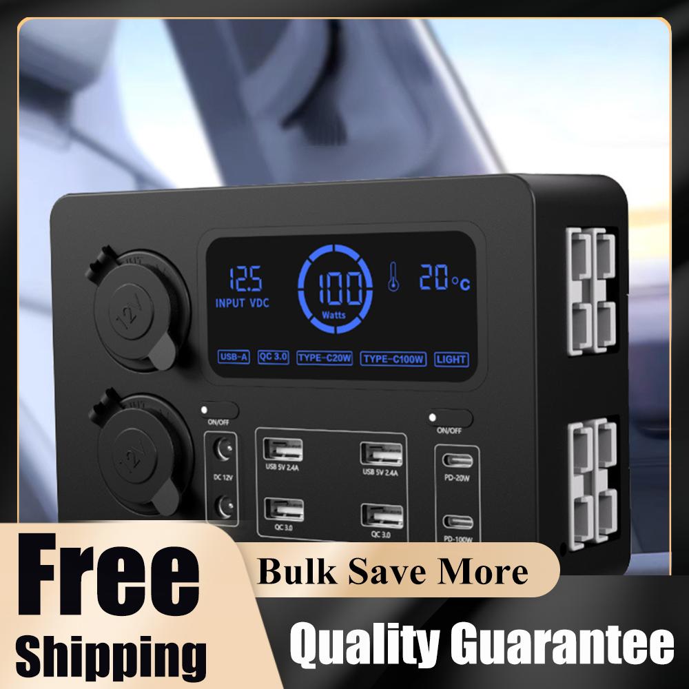 12V 100W LCD Display Power Box USB-C & QC3.0 Ports Mini Power Distribution Box Power Socket Box for RVs SUVs Boats Yachts Cars