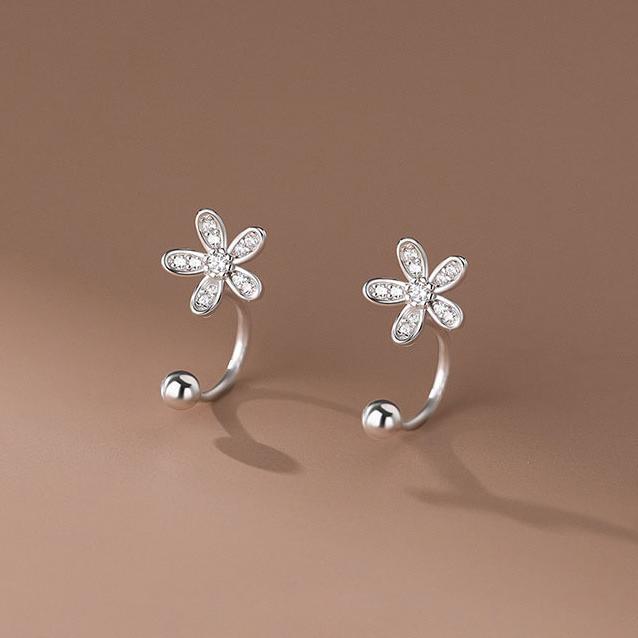 PONYKISS Sterling Silver Zircon Flower Stud Earrings for Women Cute Fine Plant Accessories Piercing Screw Ball