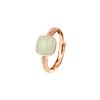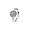 PONYKISS Tibetan Silver Square Jade Chain Adjustable Rings for Women Trendy Fashion Minimalist Chinese Style Accessories
