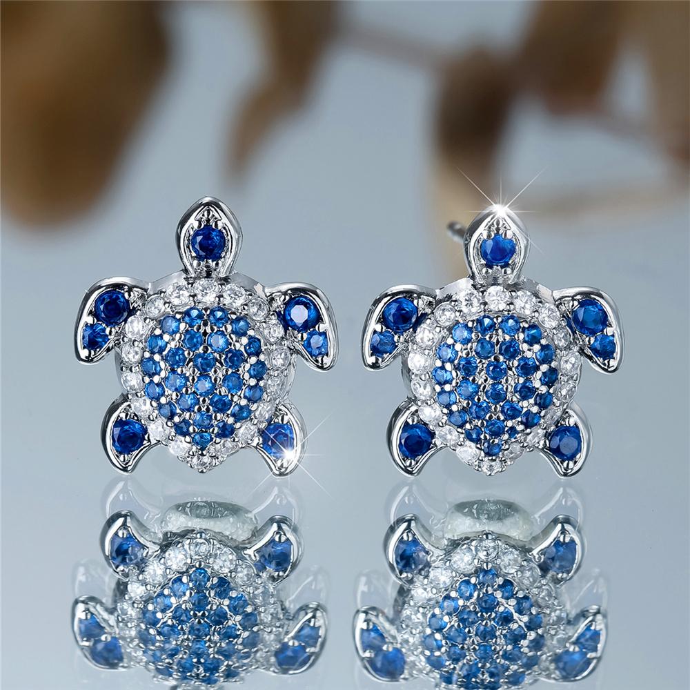 Urocze Damskie Zielone Czerwone Niebieskie Cyrkoniowe Małe Okrągłe Kolczyki-Sztyfty Żółw Vintage Srebrny Kolor Ślubne Dla Kobiet