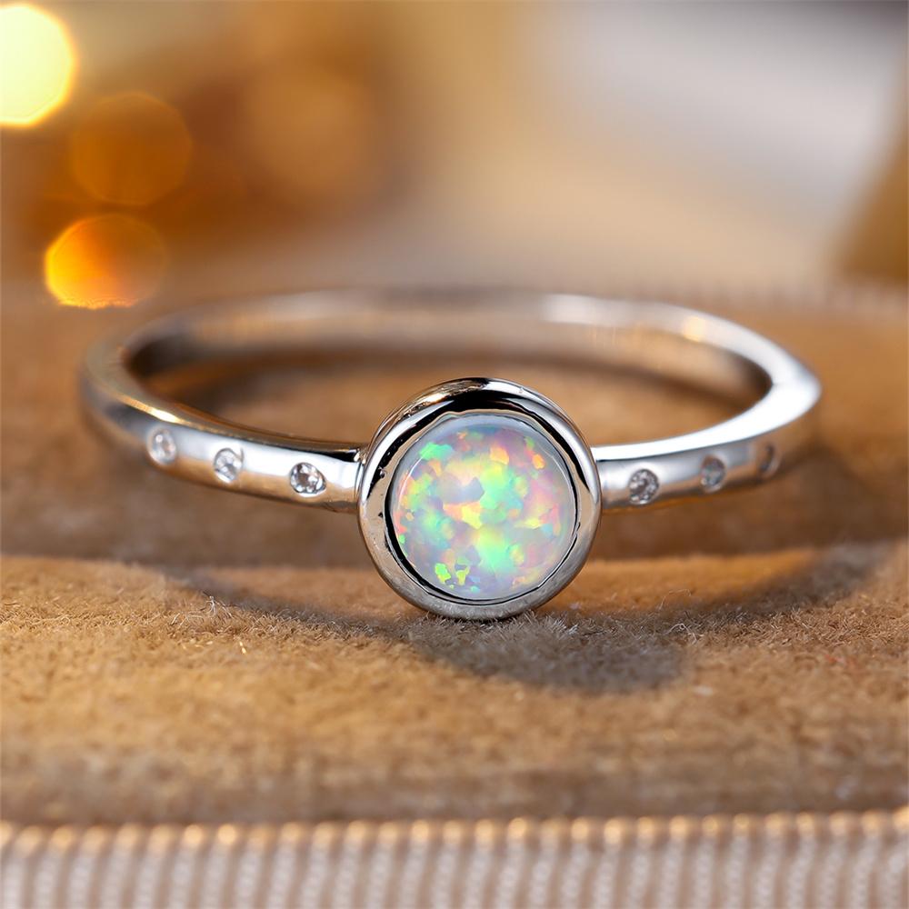 Białe Ogniste Opalowe Okrągłe Kamienie Pierścionki Solitaire Dla Kobiet Vintage Moda Srebrny Kolor Cienki Pierścionek Zaręczynowy Prosta Moda