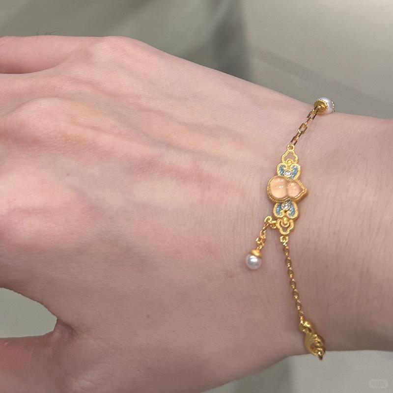 Vintage Wire Drawing Gourd Crystal Bracelets for women Light Luxury Chinese Style Charm bangles Party Wedding Romantic