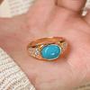 Charm diamond inlaid retro rings for women New in oval turquoise Ring adjustable opening simple suitable for daily gifts