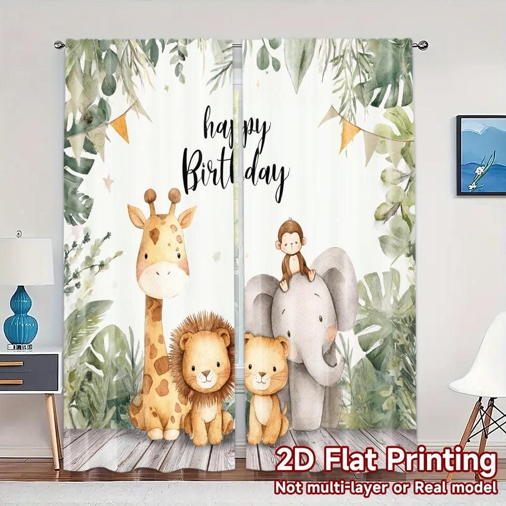 2 szt. zasłon 2D FLAT PRINTING (Bez Roda) Safari Urodziny Współczesne Nowoczesne Zasłony Tkanina Zasłony Wszechstronne Wszystko Użyj dla