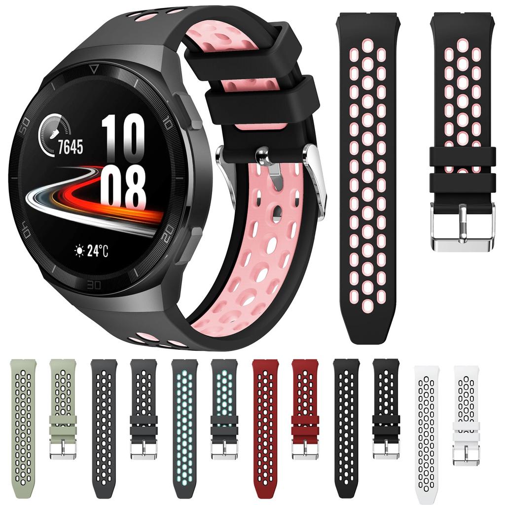 Two-Color Round Hole Silicone Watch Band Mesh Strap For Watch GT 2E