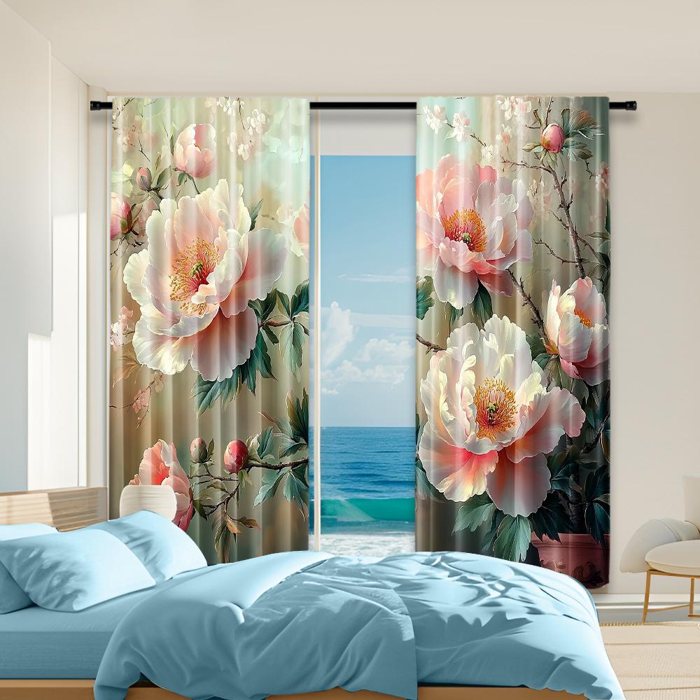 2 pcs versatile polyester transparent curtains for home decoration Pink & White Floral for use in bedrooms and living rooms