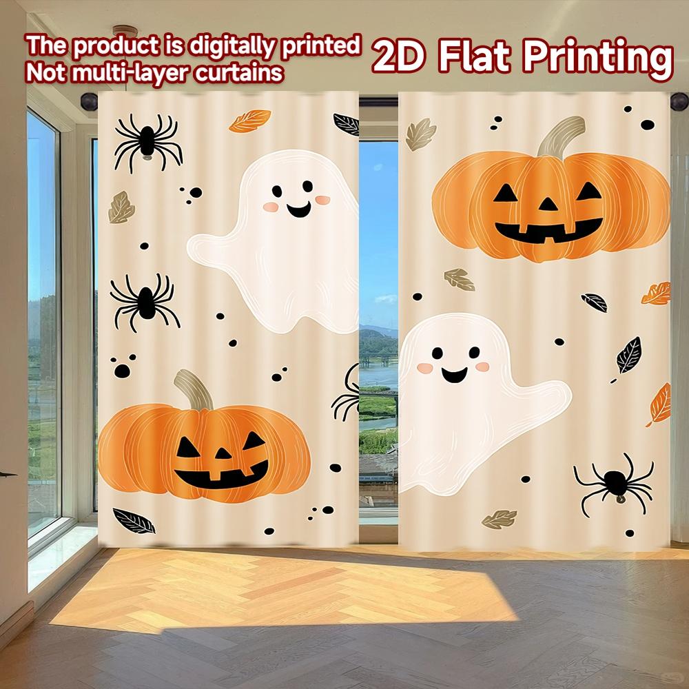 2D FLAT PRINTING 2pcs Curtains (Without Rod) Halloween Ghosts and Pumpkins (5) New year holiday curtains Versatile Polyester