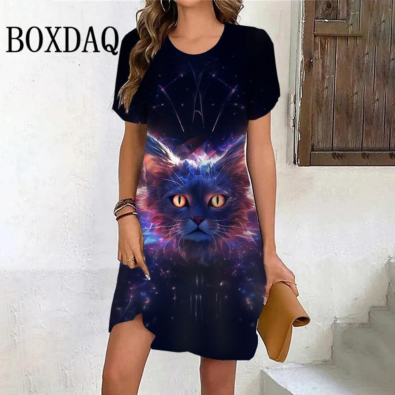 Spokojne sukienki z krótkim rękawem Słoneczne sukienki Drukowanie 3D duże rozmiary odzieży mini sukienka