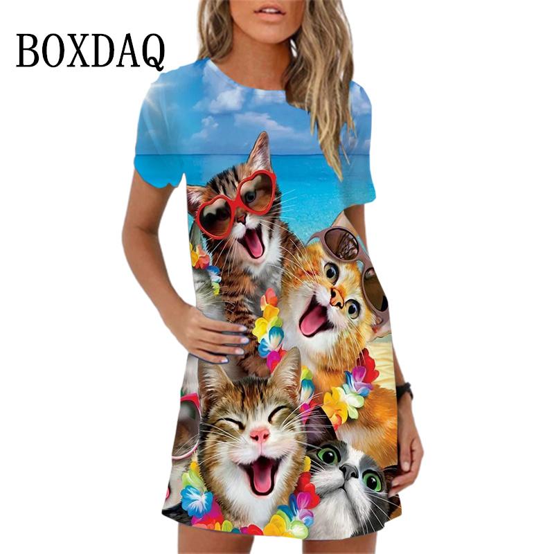 Calm dresses of a short sleeve Sunny dresses 3D printing large sizes of clothing mini dress
