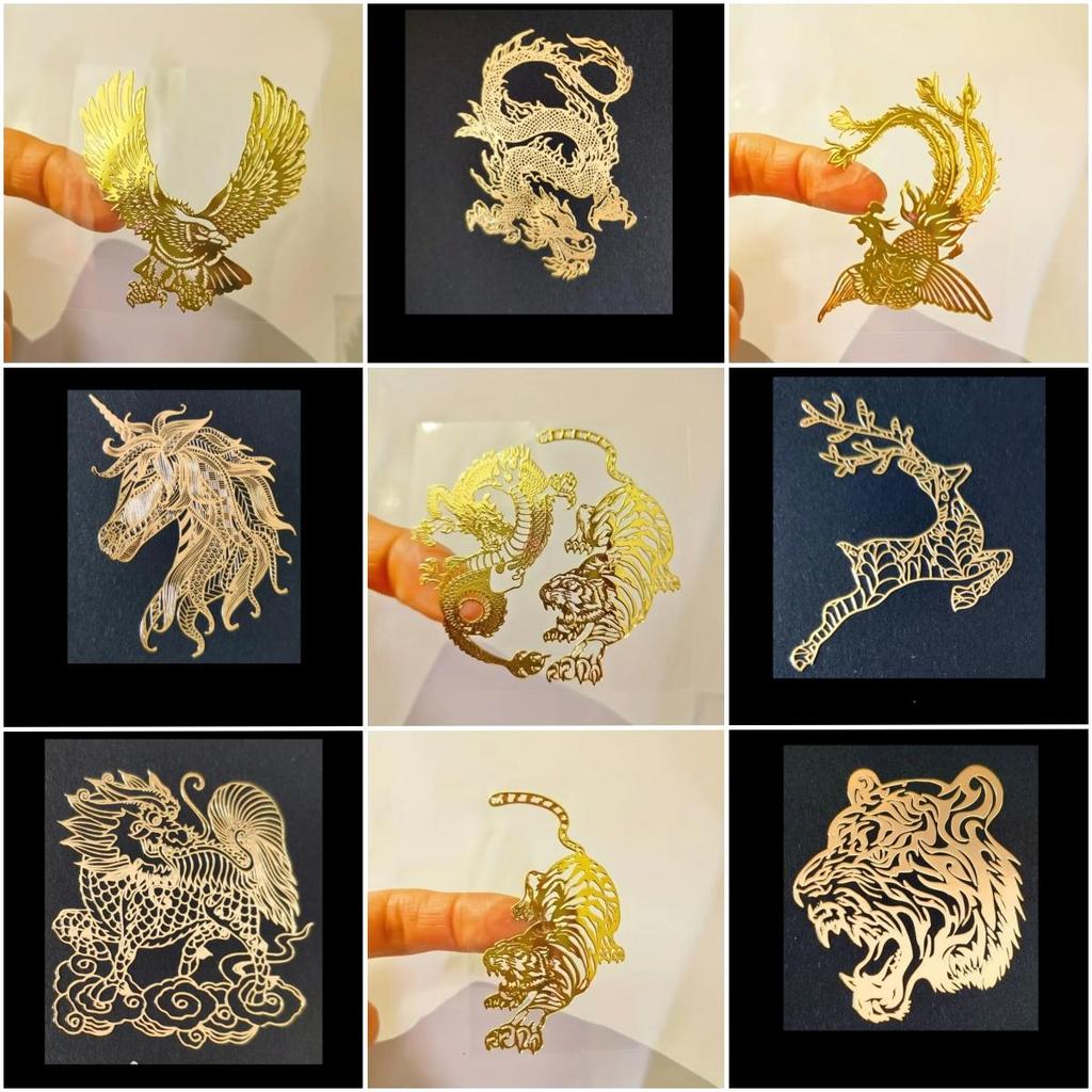 9 Modeli Metalowych Naszywek Zwierzęcych Grawerowanych Laserowo - Smok, Tygrys, Orzeł, Feniks i Inne Wysokiej Jakości Dekoracyjne Naklejki