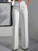 Women's High Waist Button Detail Wide Leg Trousers