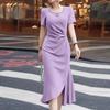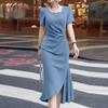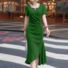 ZANZEA Damska kwadratowy dekolt letnia casualowa krótki rękaw dopasowana sukienka typu ołówkowego