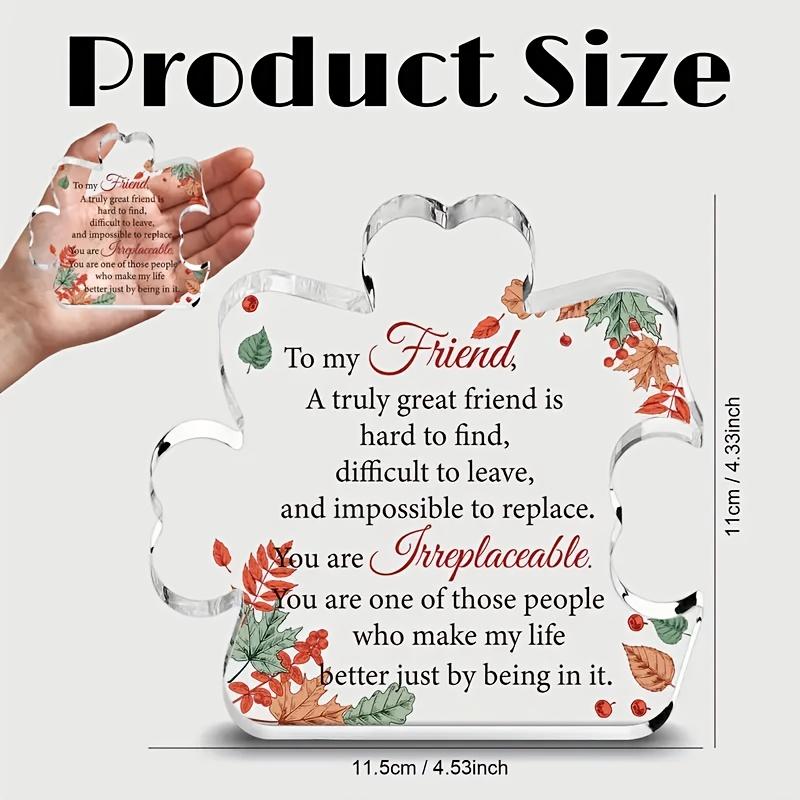 Vintage Acrylic Sign, 1pc, Friendship Puzzle Acrylic Plaque - 'You Are Irreplaceable' Heartfelt Message - Unique Best Friend Gift with Touching Quote