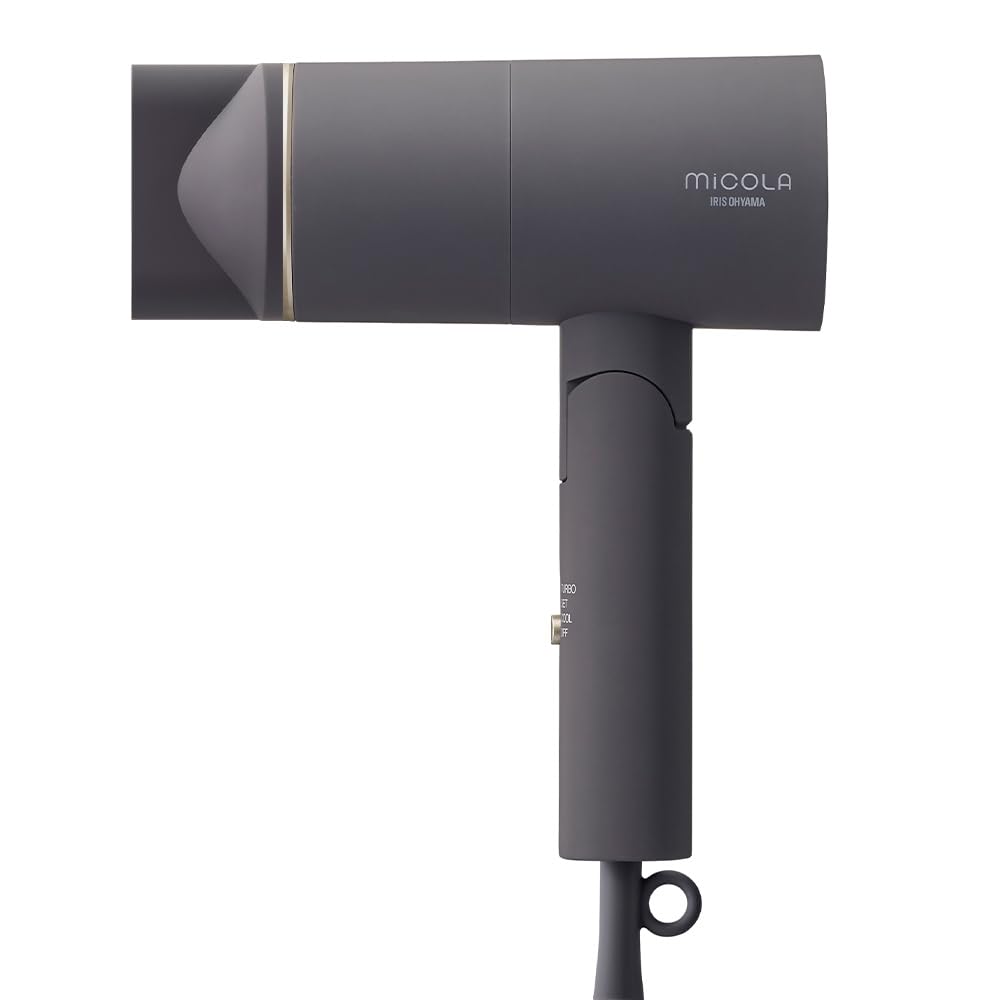 [Lightweight & Compact] This lightweight, compact hair dryer is easy to carry. Weighing approximately 515g, it's about the same weight as a 500ml plastic bottle. This reduces stress caused by the weight of the dryer during use. It also packs down compactly when not in use, making it ideal for travel. [MiCOLA] Make your daily hair care more personal and positive. Born from that idea, MiCOLA is a brand that helps bring out your unique personality while caring for your still-young hair and skin. We'll send you colorful encouragement as you take your first steps toward becoming more authentic. [Color Variations] This hair dryer is available in four colors: dark gray, off-white, mocha, and blue. Not only are the colors appealing, but the matte texture also makes it a stylish hair dryer that blends in with any interior. [Product Details] ■Airflow: 2.0m³/min (TURBO, no nozzle, according to Iris Ohyama) ■Weight: Approximately 515g ■Power Cord Length: Approximately 1.8m ■Hot Air Temperature: Approximately 50°C (TURRBO, with nozzle, at room temperature of 30°C) ■Rated Power Supply: AC100V, 50/60Hz ■Rated Power Consumption: 1200W (TURBO) ■Accessories: Instruction manual, nozzle ■Negative ions ■Far infrared radiation