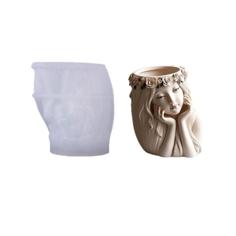 Multipurpose Silicone Girl Mold Silicone Texture for Resin Cement Creations Decorative Planter and Craft Containers