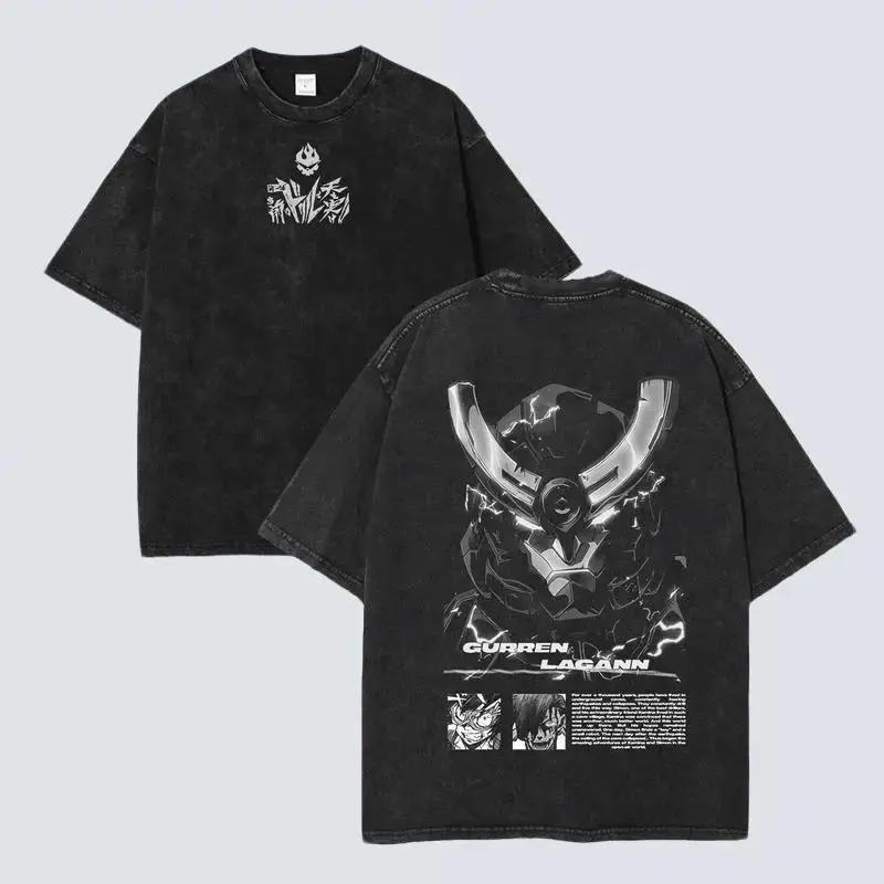 Kamina Tengen Toppa Gurren Lagann Graphic T-shirt For Men Clothing Anime Short Sleeve Tee Tops Harajuku Washed Cotton T Shirt