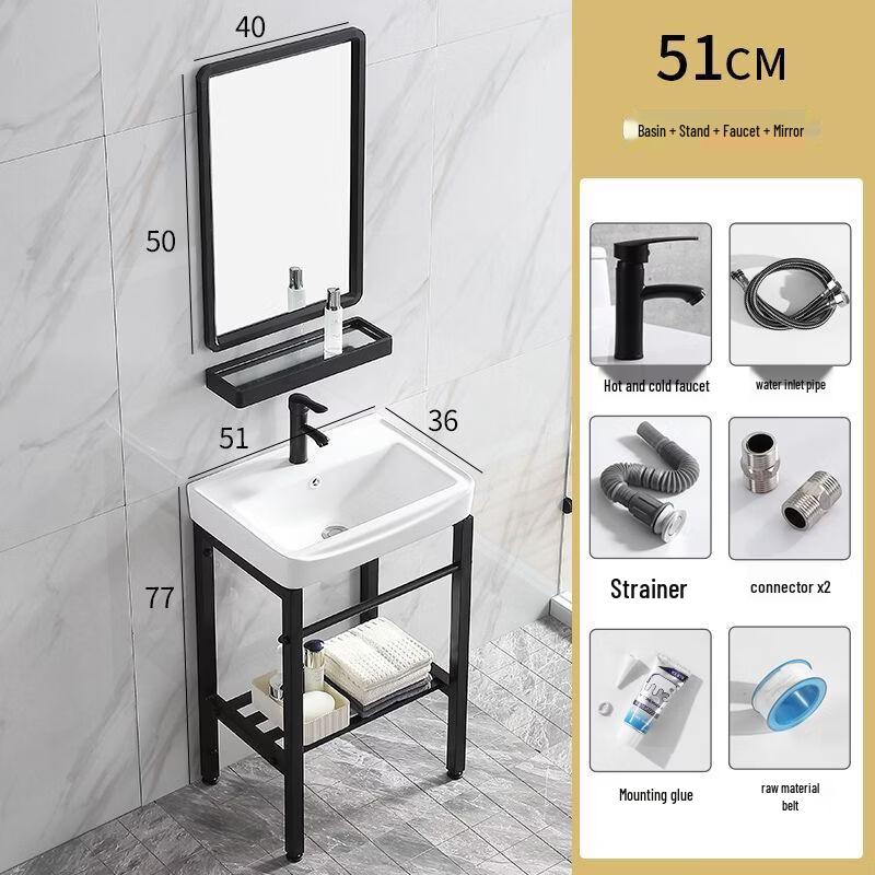 Ceramiczna umywalka do prania z szafką i stojakiem ze stali nierdzewnej