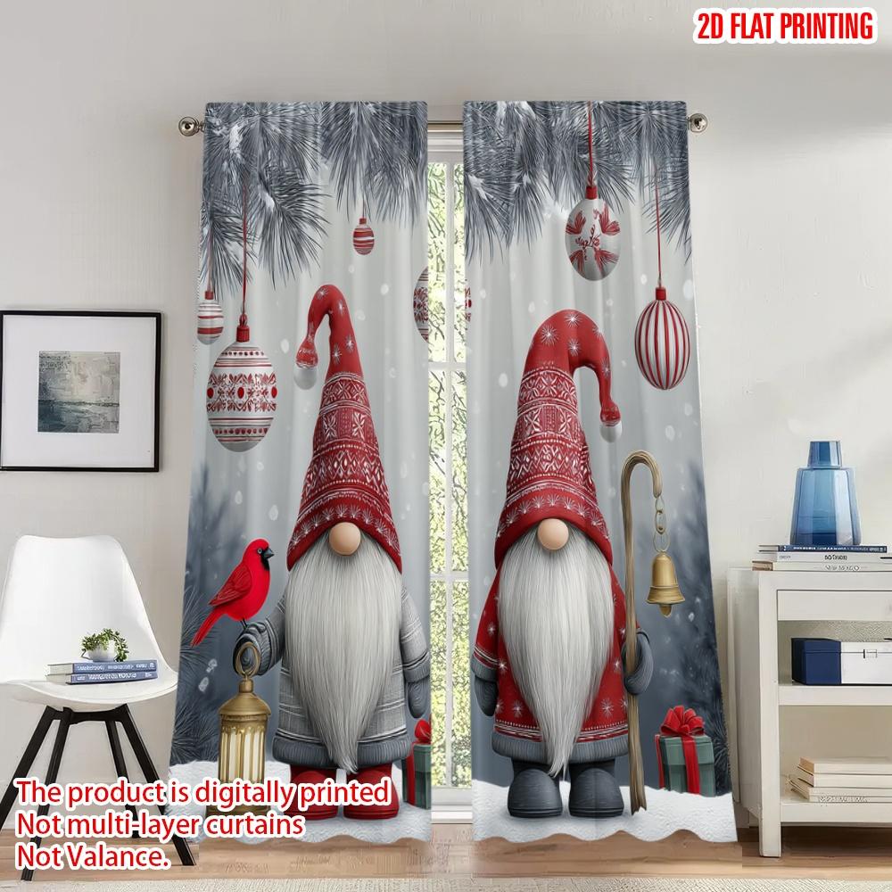 2pcs 2D flat printing High-Quality Christmas Curtains Christmas Gnomes Snow Scene Digital Printed Polyester Drapes Spring Use