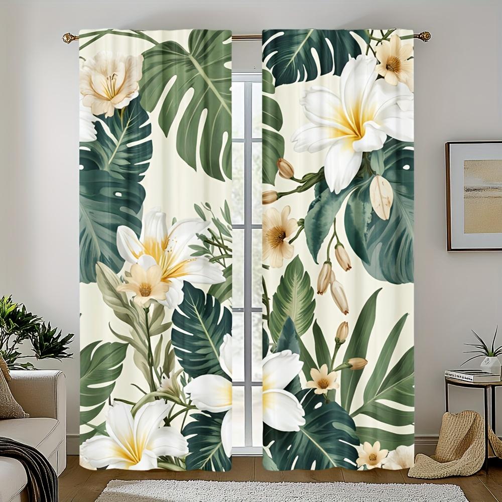 2pcs Tropical Leaf Print Blackout Curtains - High-Quality Polyester Easy Installation No Rod Needed Ideal for Bedroom Living