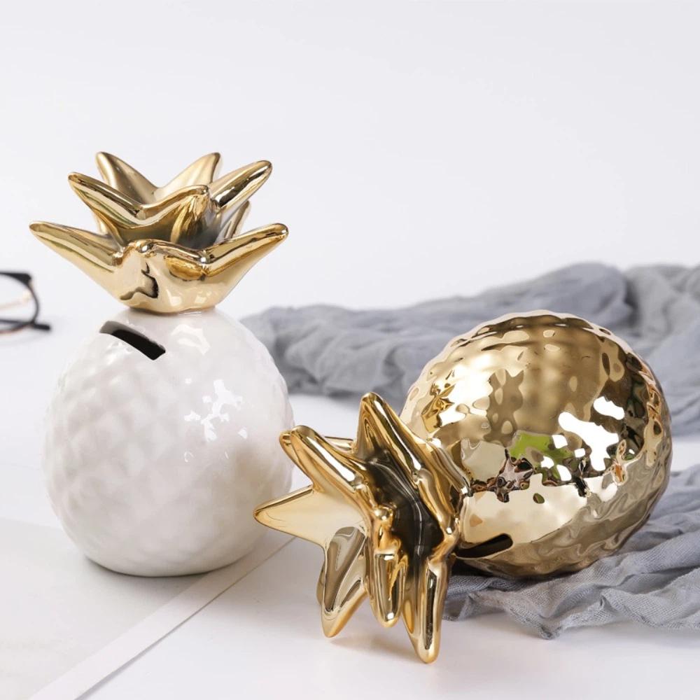 Ceramiczna Ceramiczna Skarbonka Ananas Pojemnik na Złote Fasolki Pozłacany Zbiornik na Pieniądze Oszczędności Dekoracja Biurka Ozdoby Domowe Słoik na Pieniądze