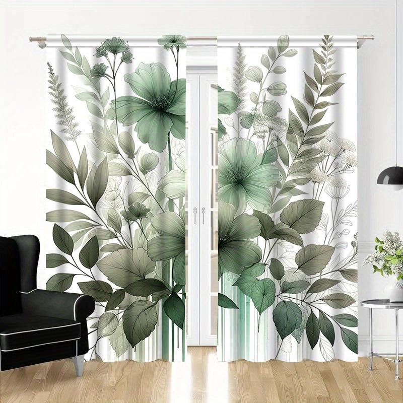 2pc Green plant leaf pattern curtains polyester fabric machine washable suitable for bedroom and living room decoration