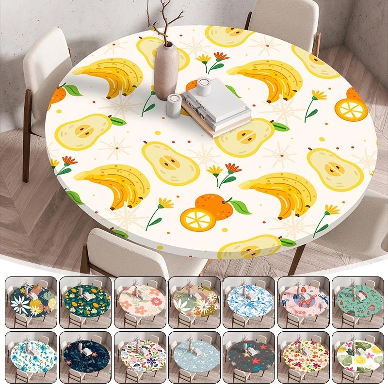 Round Table Cover for Kitchen Dining Table Waterproof Stretchable Tablecloth Stain-Resistant Round Table Mat Wedding Party Home