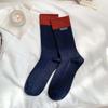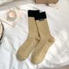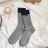 Wool Socks with Children's Multi-color Letter Fabric Labels, Mid-calf Socks, Vertical Stripes, Chunky Socks