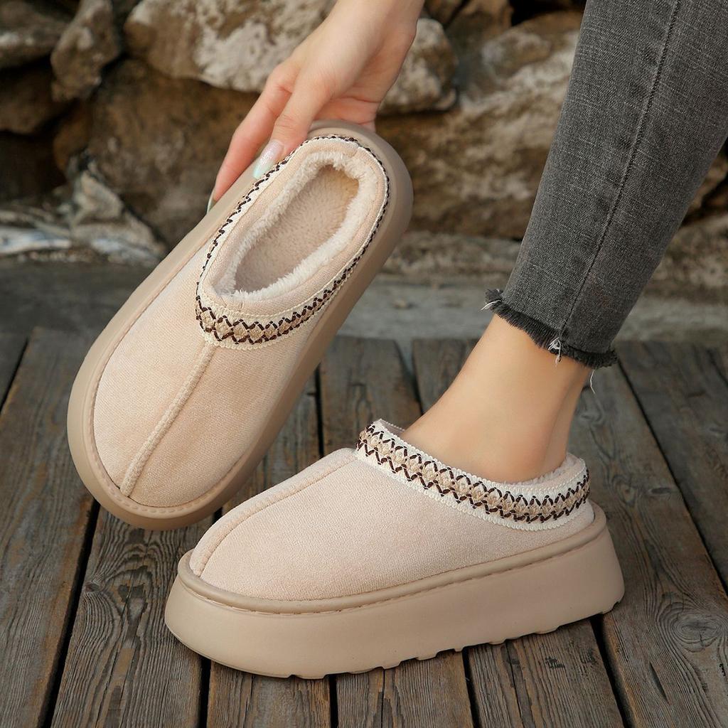 Versatile, comfortable, warm, stepping on shit, baotou half slippers, autumn new casual cotton slippers