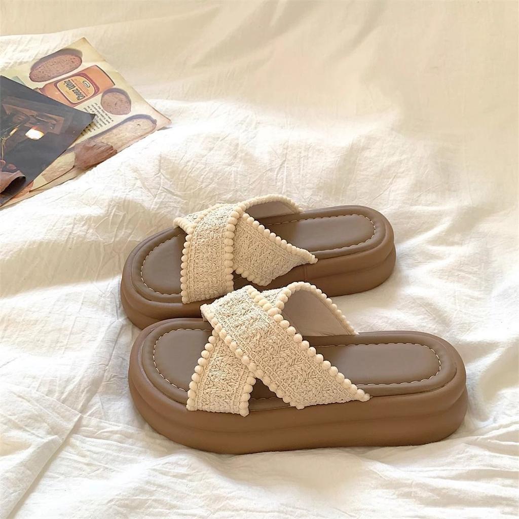 Cool slippers women's summer wear platform casual beach sandals fashion French heightening one-word drag
