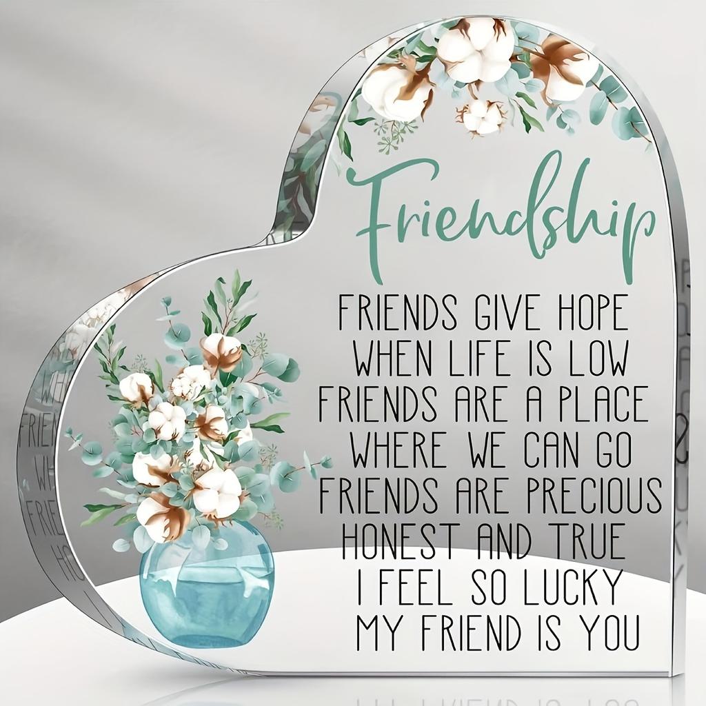 Christmas & Birthday Gift, Acrylic Heart-Shaped Keepsake for Home Office Desk Decoration, Friendship Present for Friends - Acrylic Desktop Ornament