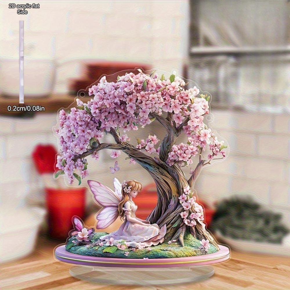 Wróżka Kwitnącej Wiśni Dekoracja Biurkowa - Elegancka Różowa Wróżka na Gałęzi Pełnej Kwiatów Wiśni, Odpowiednia na Wielkanoc, St. Dzień Świętego Patryka, Walentynki