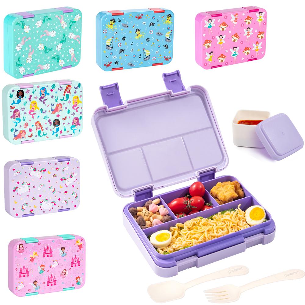 1180ml Adorable Cartoon Printed Bento Box Leakproof BPA-Free Snack Food Container Microwavable Divided Lunch Box for Picnic Kids